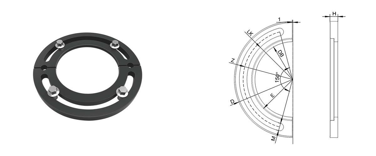 • 고정 플랜지는 기계 테이블에 MESA 유형 (LQTMS)을 장착하는 데 사용됩니다.