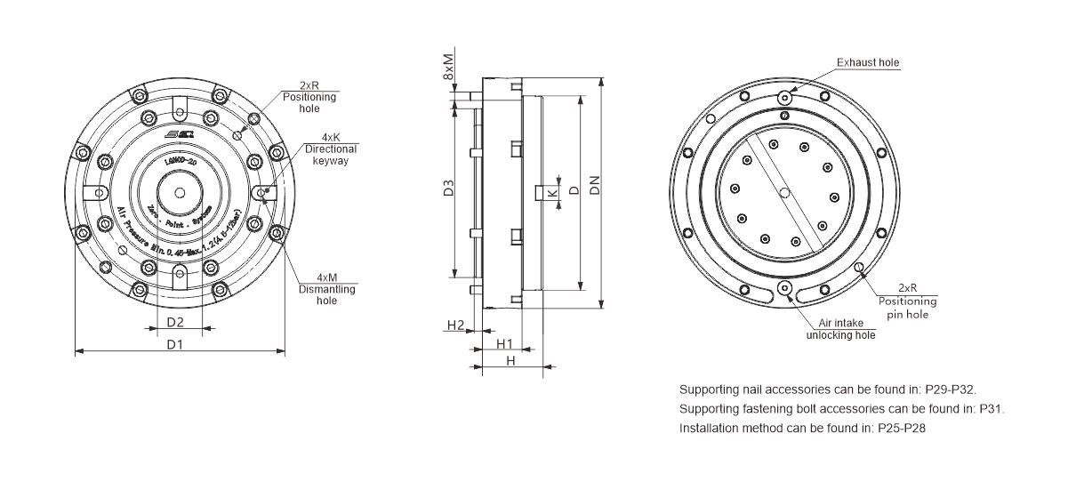 반복 포지셔닝 정확도 ≤0.005mm, 단일 포지셔너 클램핑 력 17KN, 장력 력 55KN. 어셈블리 부분이며 설치가 쉽습니다.